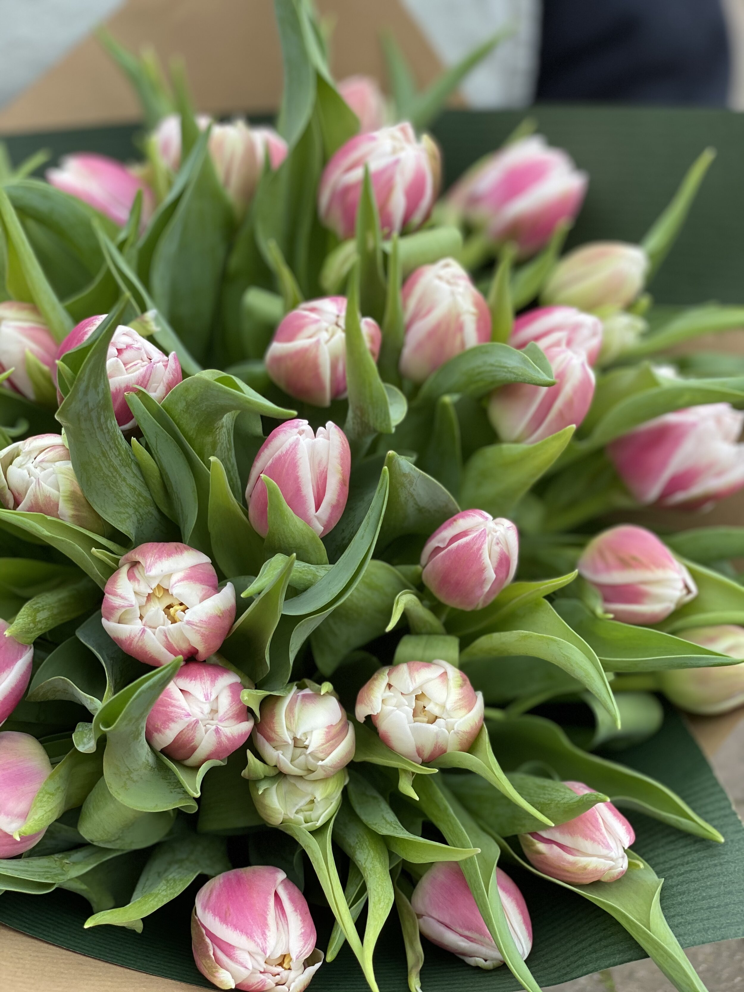 Allow our talented florists to create a beautiful seasonal bouquet, of all double tulips using the freshest blooms direct from our growers.